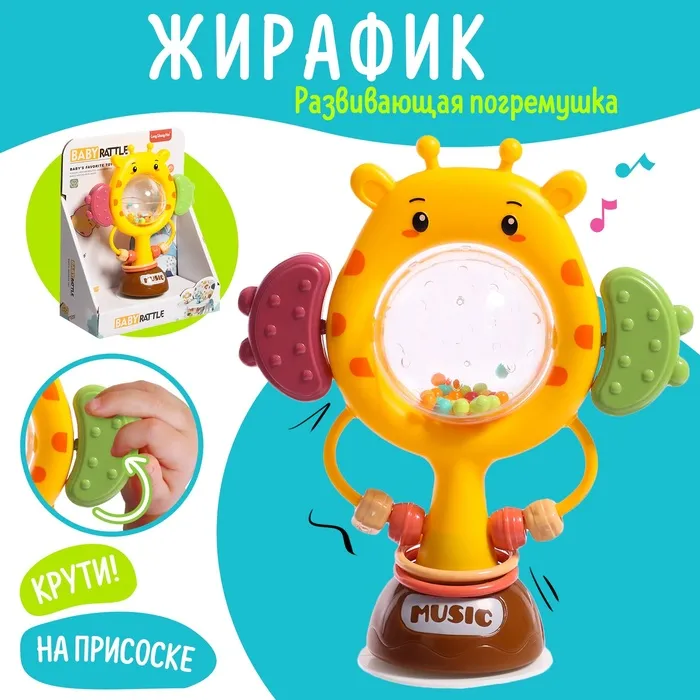 Игрушка помогает малышу совершенствовать координацию движений, исследовать текстуры и звуки. Яркие цвета способствуют формированию цветовосприятия, а взаимодействие с движущимися элементами тренирует реакцию и внимание. Используя присоску, родители могут удобно закрепить игрушку, чтобы ребёнок играл, оставаясь в одном месте.