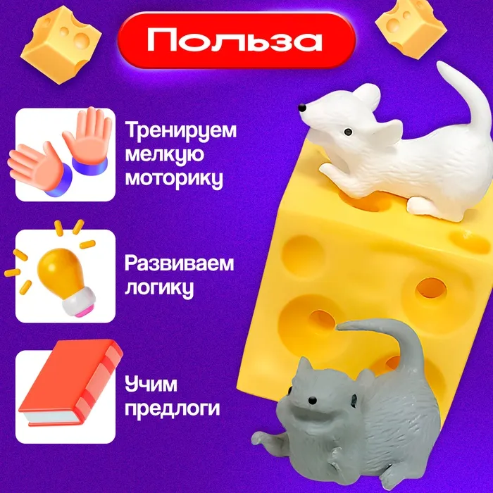 • Спрячьте мышек в сыр, а ребёнку предложите достать их оттуда.