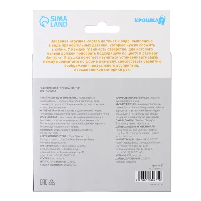 Развивающая игрушка - сортер Крошка Я «Мягкие фигурки», от 6 мес. — Характеристики