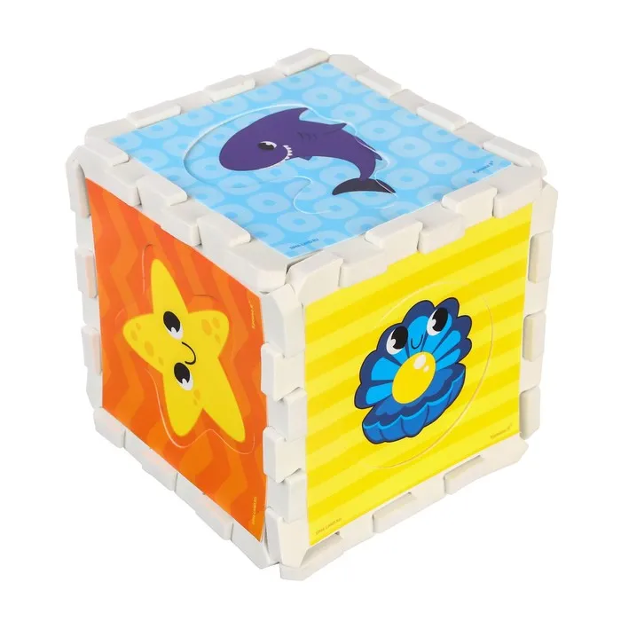 Изделия выполнены в виде куба - сортера, которые нужно соединять друг с другом, чтобы собрать единый кубик.