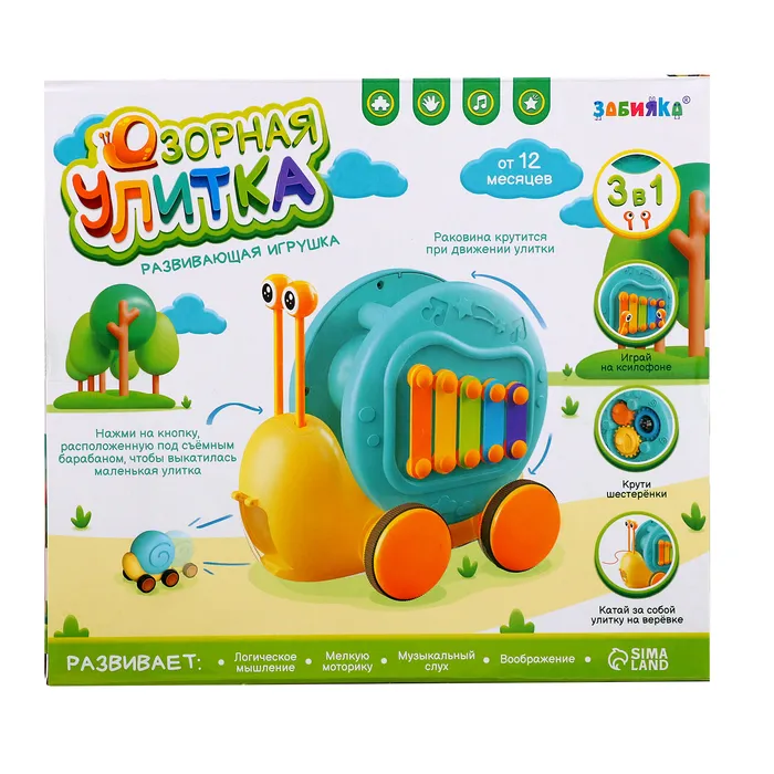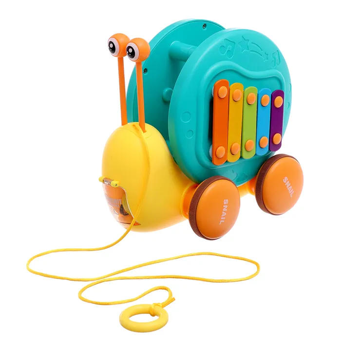 Музыкальная улитка на верёвочке — это яркая развивающая игрушка, которая превращает прогулки малыша в увлекательное путешествие. Удобная форма и продуманные элементы делают её идеальным выбором для детей от года.