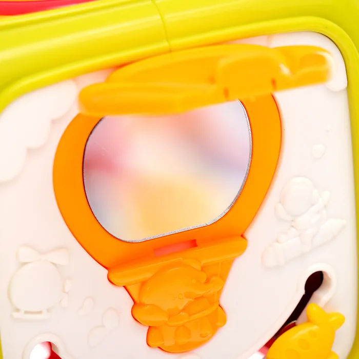 - Забавные элементы — игрушка оснащена крутящимися шестерёнками, милым зеркальцем и подвижной уточкой, что добавляет разнообразие в игру и стимулирует тактильное восприятие.