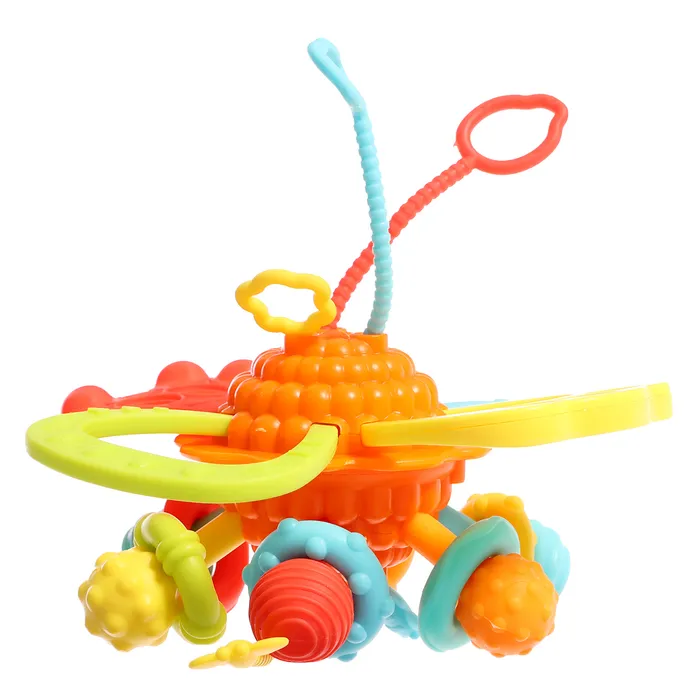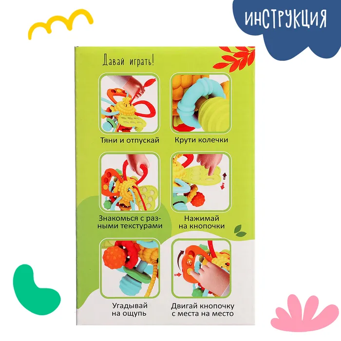 - Тяните за колечки и верёвочки, чтобы развивать мелкую моторику.