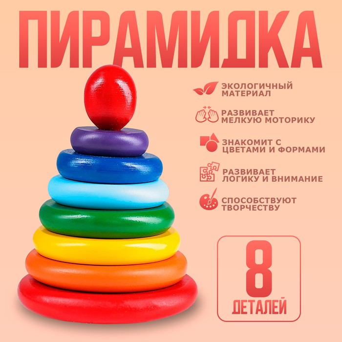 Игра с пирамидкой формирует у ребёнка представление о цветах и размерах предметов.