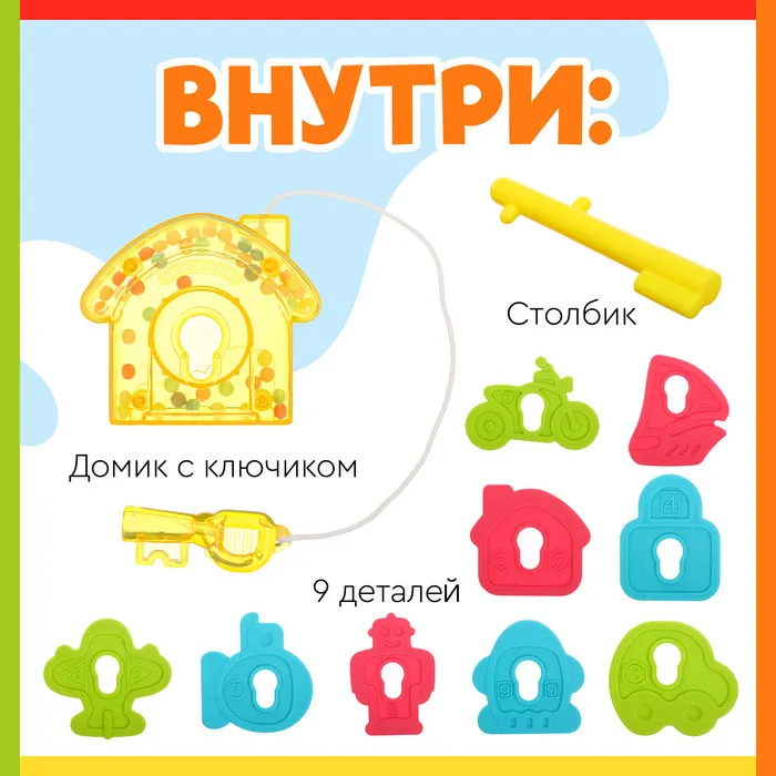 Игрушка способствует развитию усидчивости, логического мышления и навыков сортировки. Шнуровка укрепляет пальцы и готовит руку к письму, а работа с ключиком и дверцей помогает понять простейшие механизмы.