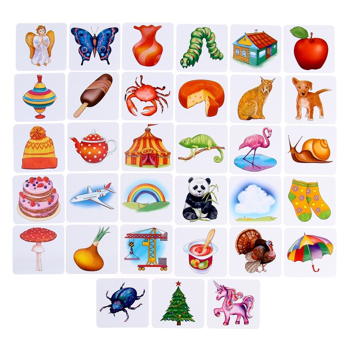 - Игра «Найди и назови». Разложите все карточки перед ребёнком. Попросите назвать все, что летает, что съедобное, элементы одежды, животных и т.п.