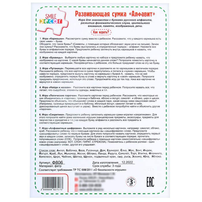 - Творческие игры: Сумка подойдет не только для обучения, но и для увлекательных творческих игр.