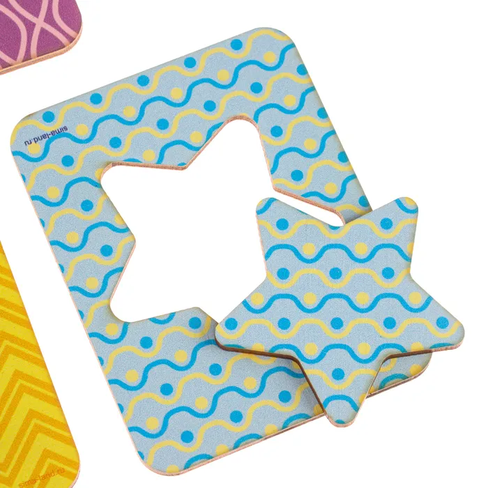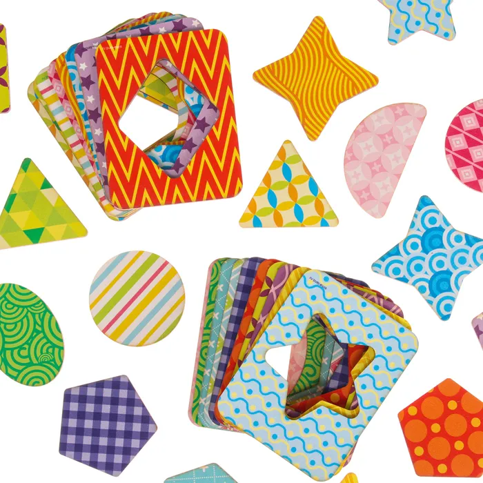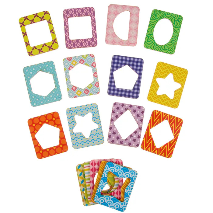 Суть игры: в карточку со специальной выемкой необходимо вставить недостающий элемент, подходящий по форме и цвету.
