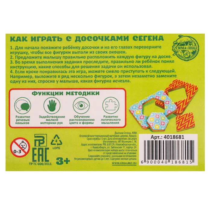 Головоломка создана по методике Эдуарда Сегена (доски с вкладышами).