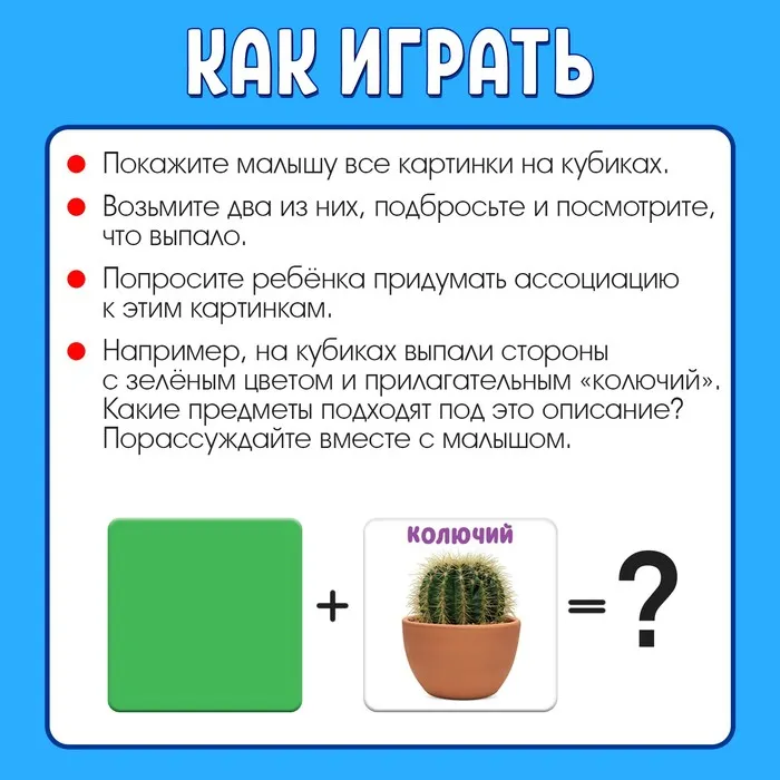 С такими игрушками ребёнок весело и с пользой проведёт время. Набор ярких кубиков разовьют ассоциативное мышление, творческие способности и пополнят словарный запас.