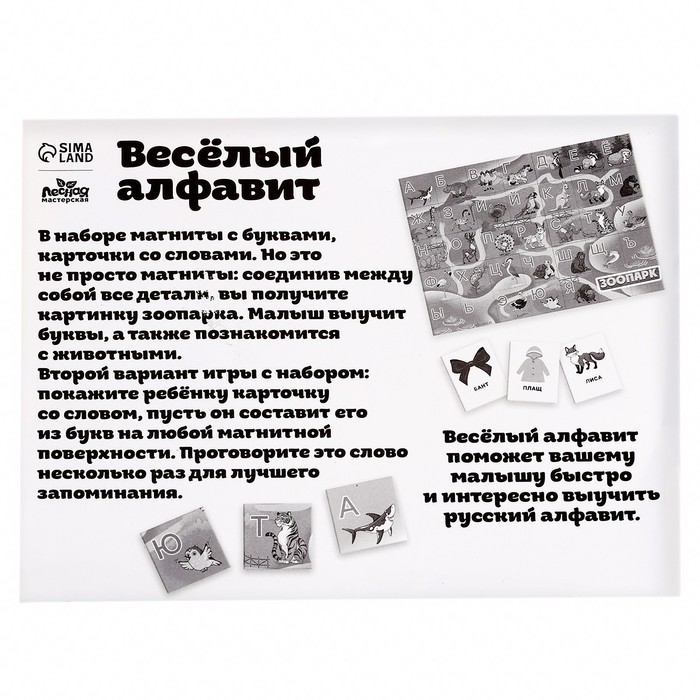 В наборе магниты с буквами и карточки со словами. Но это не просто магниты!
