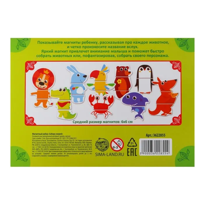 Развивающие магниты «Собери зверей», набор 24 шт. — Характеристики