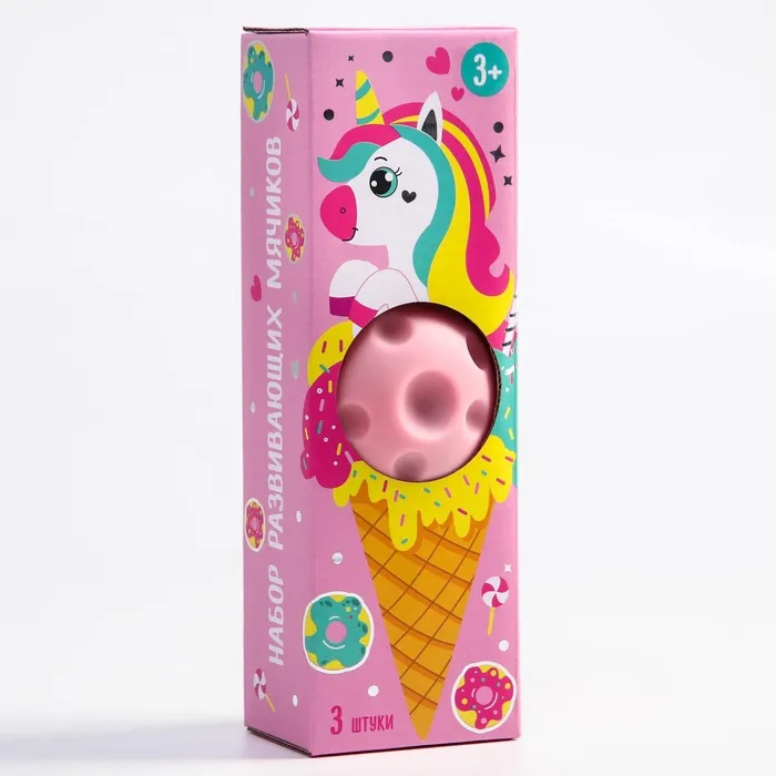Развивающие тактильные мячики Крошка Я «Единорог», с пищалкой, в наборе 3 шт, виды МИКС — Характеристики