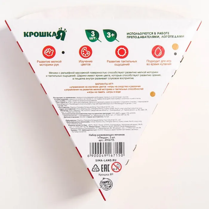 Развивающие тактильные мячики Крошка Я «Пицца», с пищалкой, в наборе 3 шт. — Характеристики