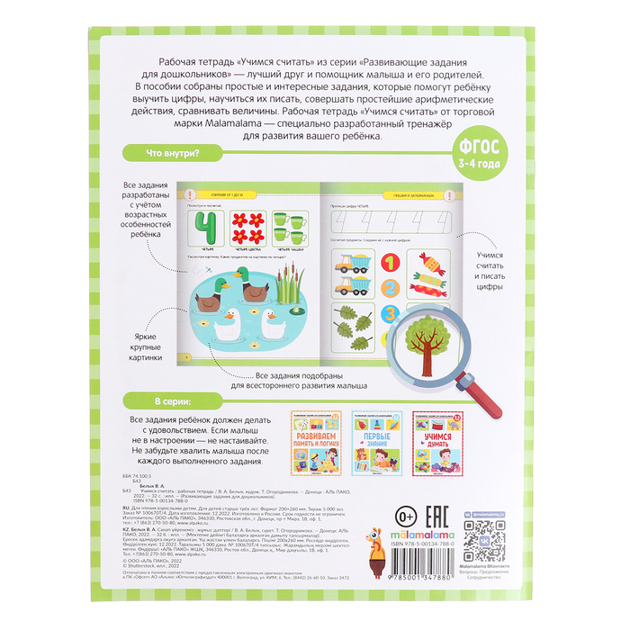 Развивающие задания для дошкольников «Учимся считать», 3-4 года — Характеристики