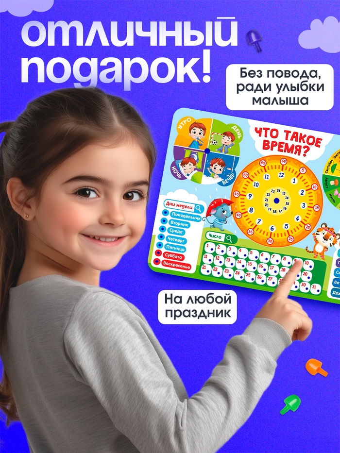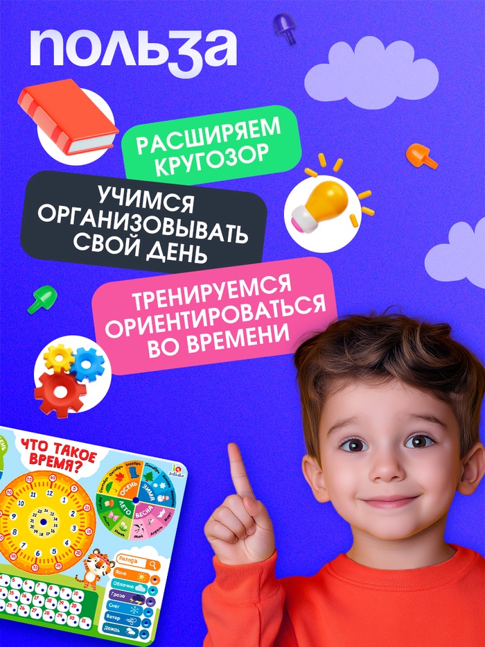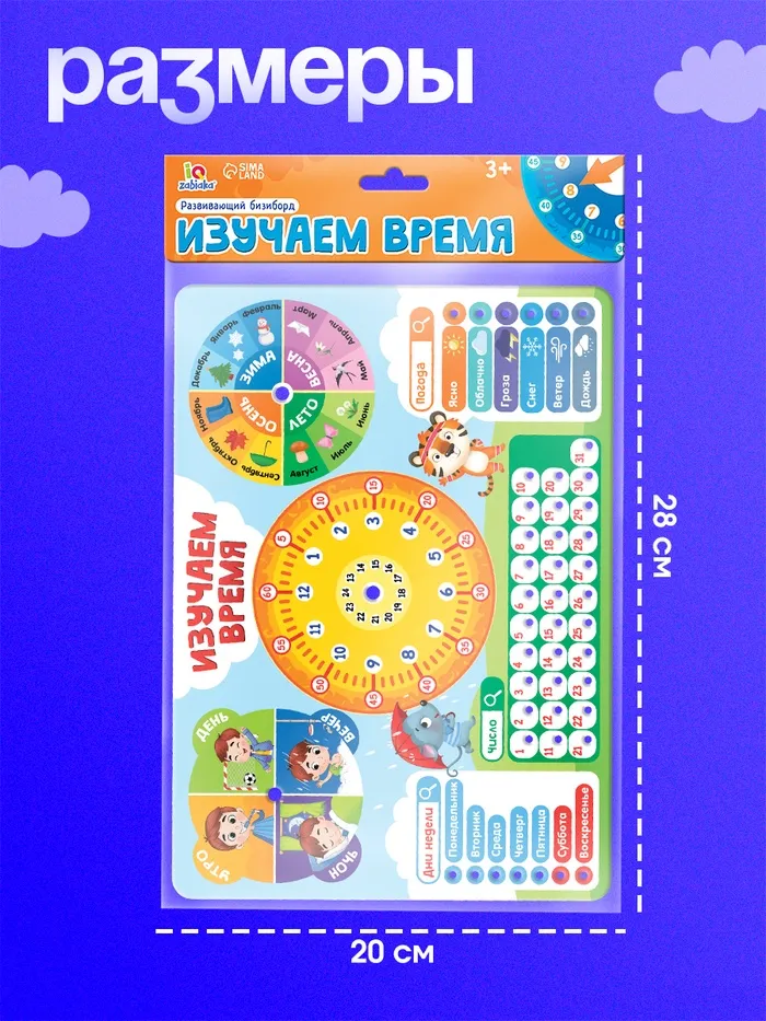 Развивающий бизиборд «Что такое время?», 3+ — Характеристики