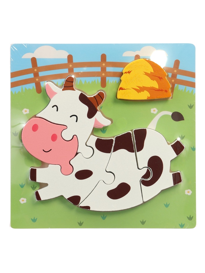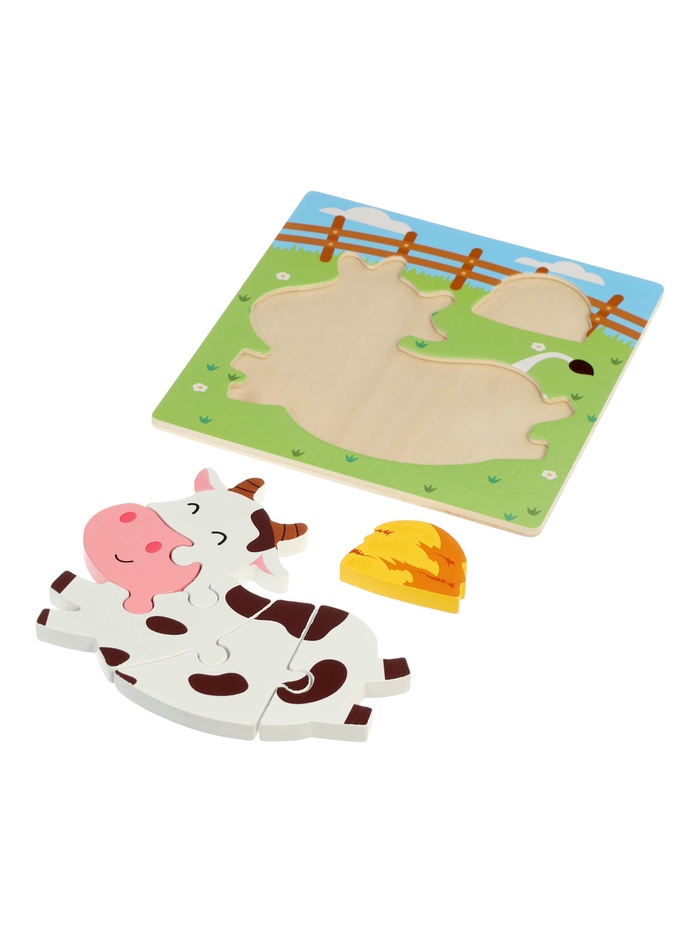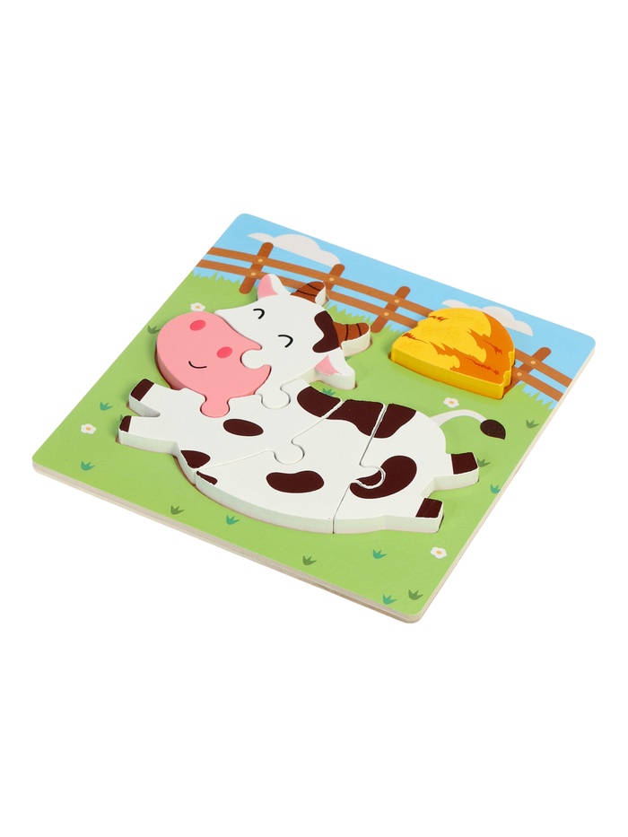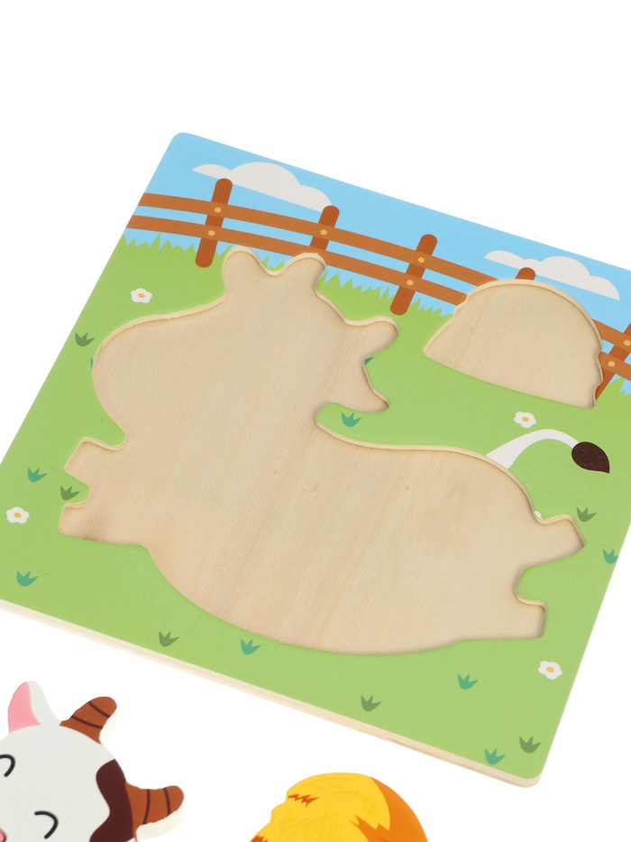 Мягкие линии, тёплый деревянный рельеф и добродушная коровка, которую нужно вернуть на своё место — всё в этом пазле создано для маленьких ручек и любознательного взгляда. Ребёнок не просто вкладывает фигурку, а учится понимать связь между формой, контуром и изображением.