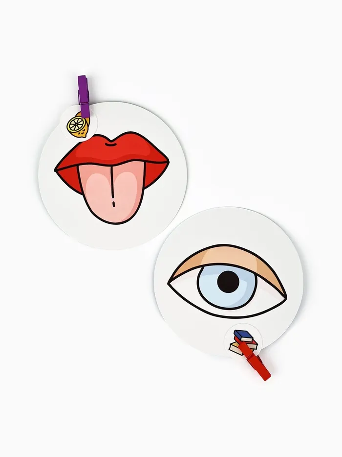 Проговорите с ребёнком, какие действия мы совершаем, когда задействуем разные органы чувств. Далее он должен прикреплять прищепки и картинки к правильным карточкам с органами чувств. Проговорите результат и обсудите какие прищепки могут быть расположены сразу на нескольких карточках и почему.