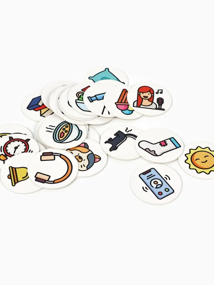 Возьмите карточки с прищепками и показывайте на каждый жетон по очереди. Ребёнок должен показывать, как бы он отреагировал на тот или иной предмет.
