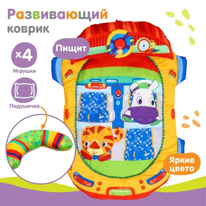 Развивающий коврик «Машинка», руль, подушечка, 5 игрушек, размер 78х52 см — Характеристики