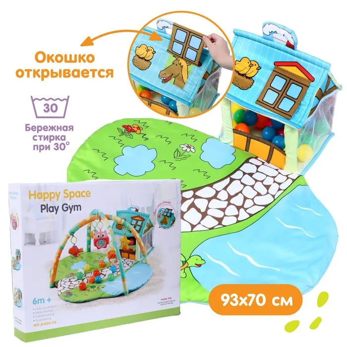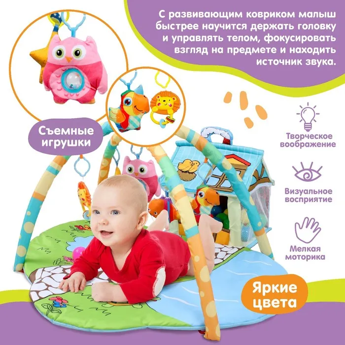 Развивающий коврик с дугами «Домик», размер 93×70 см, 30 цветных шариков, 5 игрушек — Характеристики