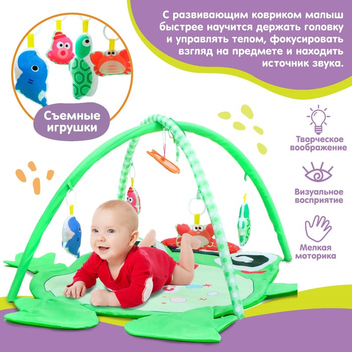 Развивающий коврик с дугами Крошка Я «Лягушонок», 4 игрушки, зеркало, 78х69 см — Характеристики