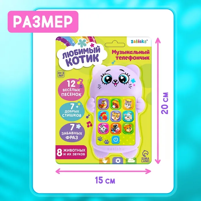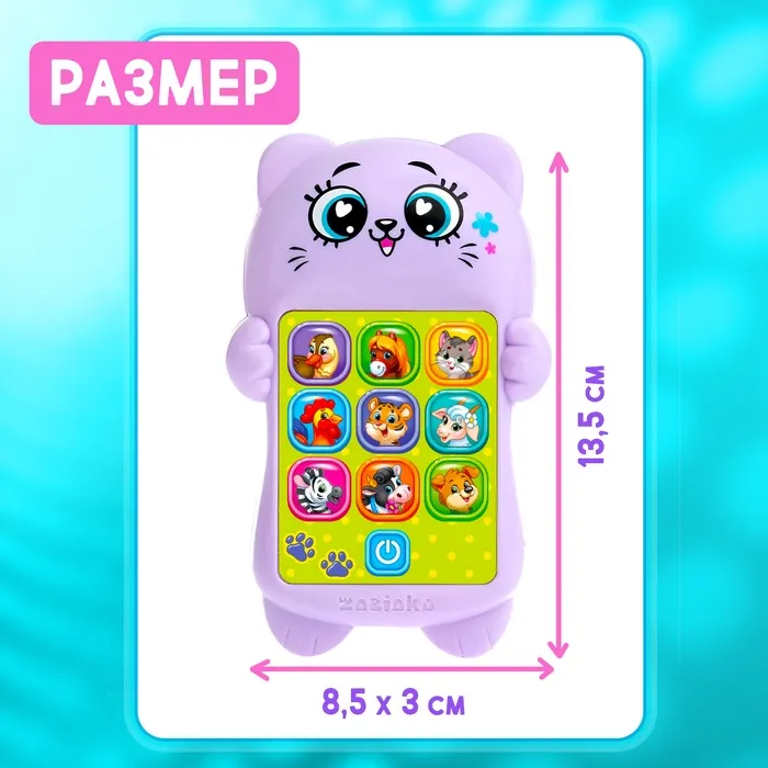 Развивающий музыкальный детский телефон «Любимый котик», световые эффекты — Характеристики
