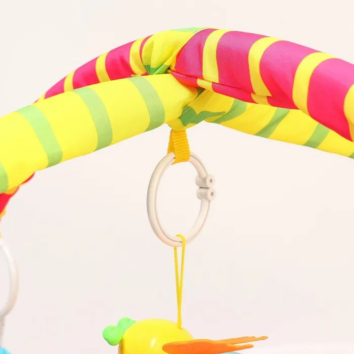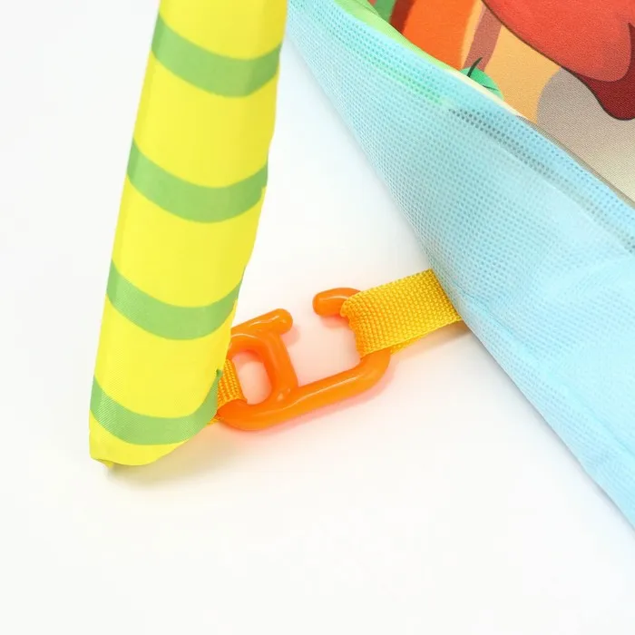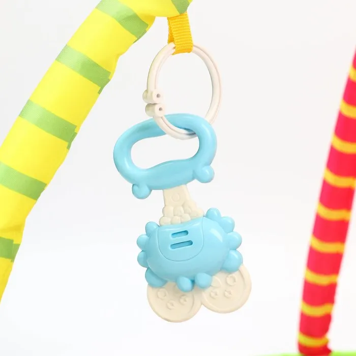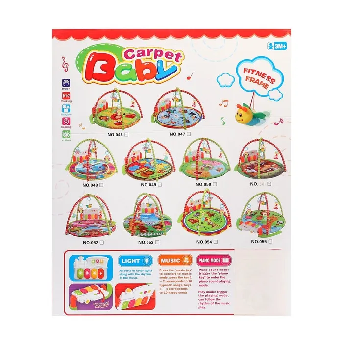Малыш играет на спинке лёжа. На самом раннем этапе своего развития малыш тянется за яркими, притягивающими внимание игрушками и учится их хватать. В комплекте с ковриком прилагаются подвесные игрушки, яркие и привлекательные, они служат для развития тактильных ощущений и зрения.
