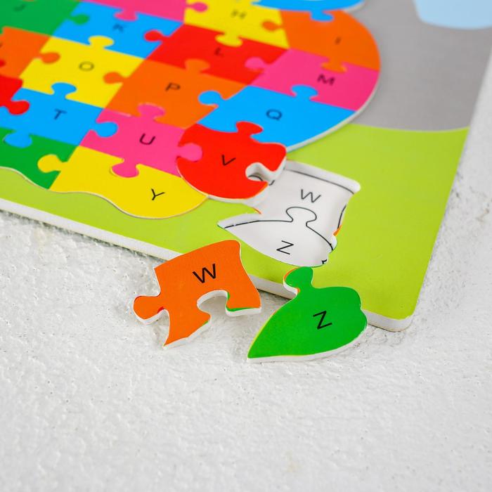 - Собирайте пазл, учите буквы английского алфавита и сортируйте детали по цветам вместе с ребёнком.