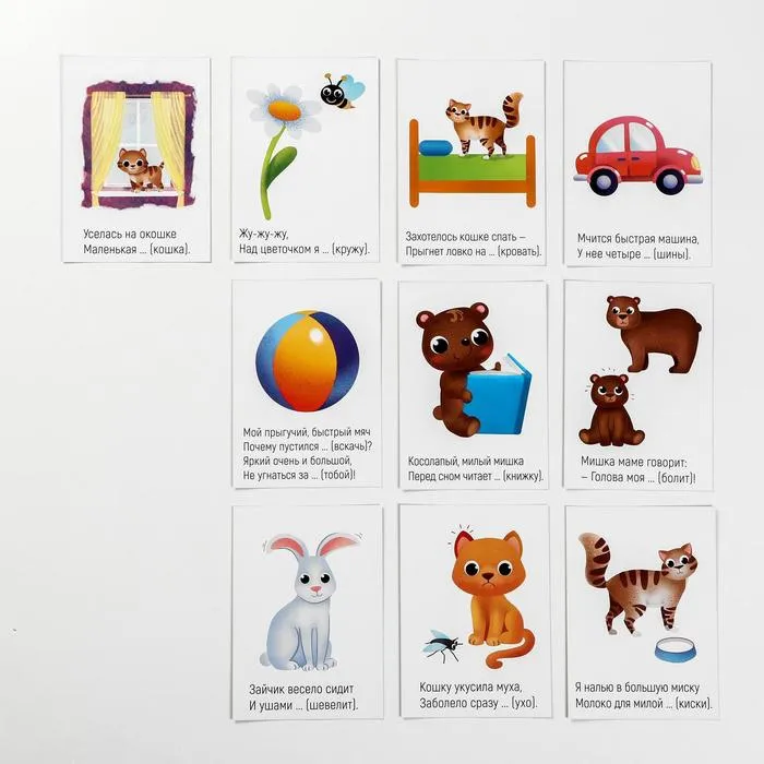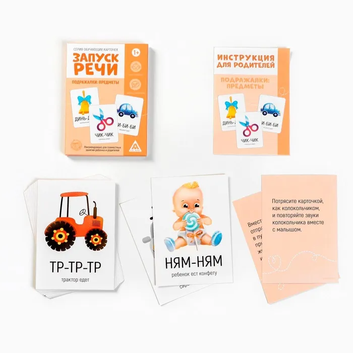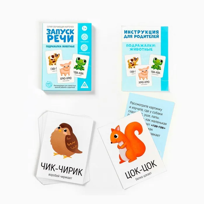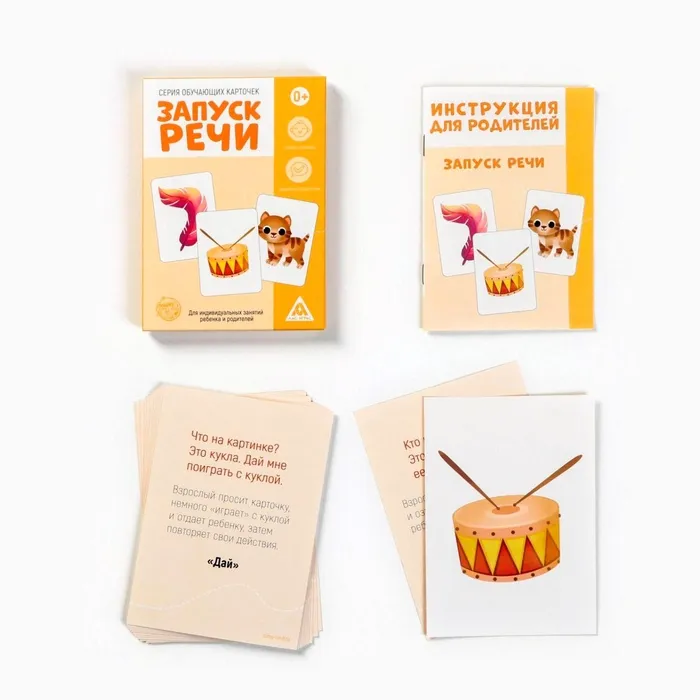 Переживаете, что ребёнок никак не заговорит? Хотите заниматься дома, но не знаете, с чего начать? Специально для запуска речи у самых маленьких деток мы совместно с педагогом и психологом Дарьей Даяновой разработали набор из 6 видов обучающих карточек, которые помогут отработать первые звуки и слова, а также развить мелкую моторику.
