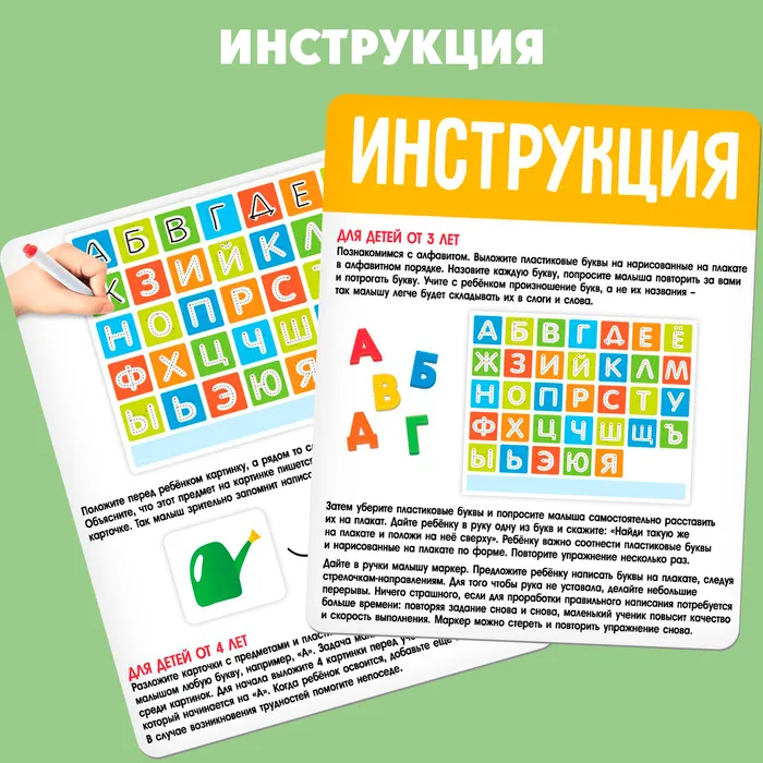Развивающий набор «Алфавит», пиши-стирай, плакат, карточки, пластиковые буквы — Характеристики