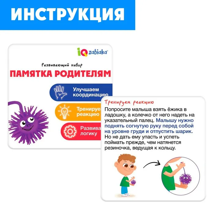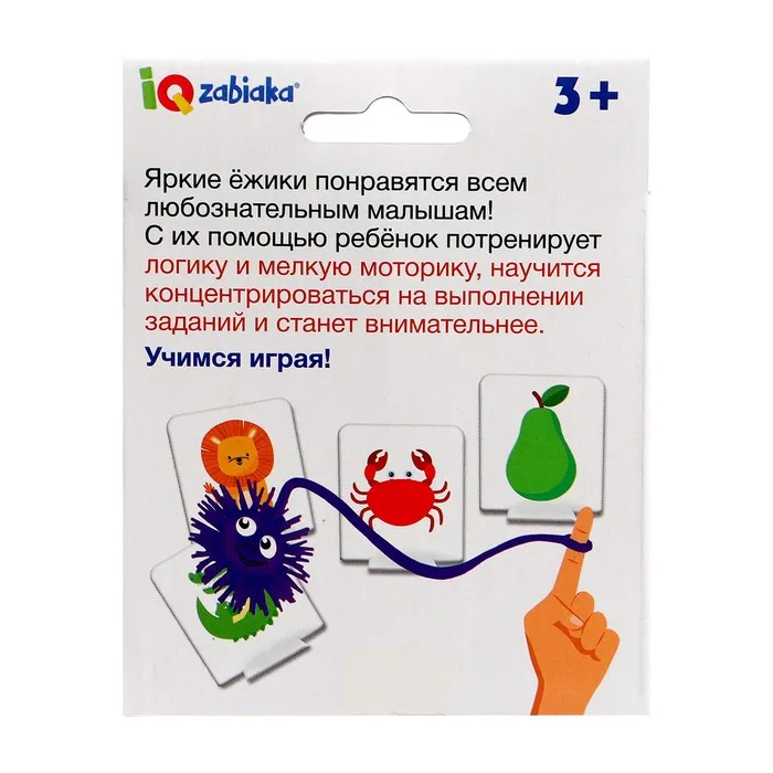 Внутри вы найдёте 2 цветных ёжика и 20 карточек.