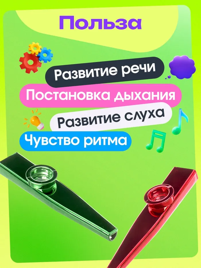 Набор «Флейта казу» — это не просто игрушка, а полезный инструмент для развития речи и музыки в игровой форме.
