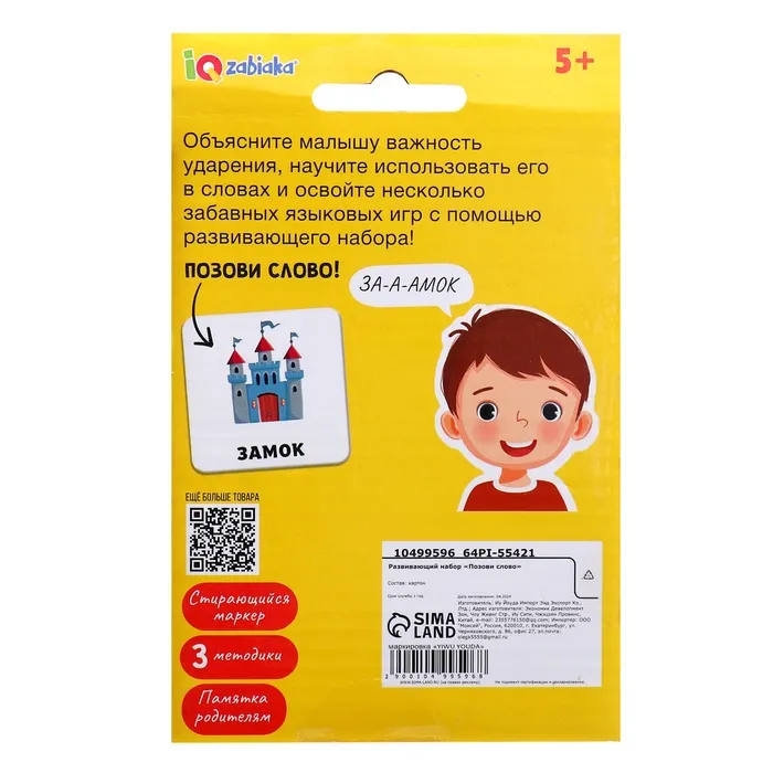 Развивающий набор «Где ударение?», 20 карточек, 3+ — Характеристики