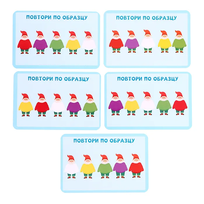 - Наденьте свитера на гномов в том же порядке, что и на карточке.