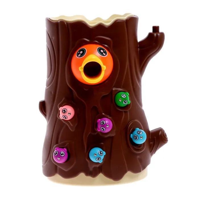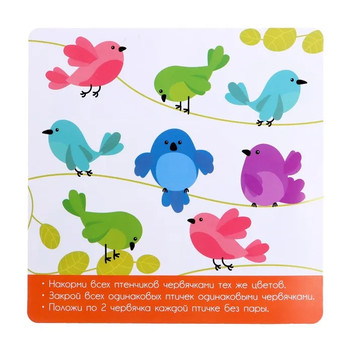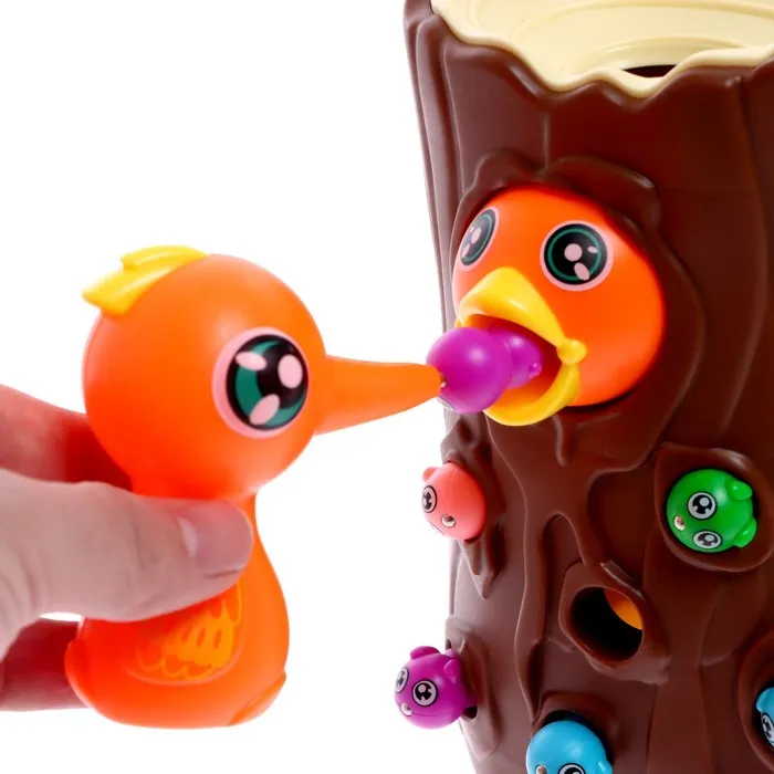 Птенчик пищит и просит, чтобы мама-птица его покормила. Но для этого ей понадобится помощь вашего малыша! Вместе с ребёнком расположите червячков в дереве, а затем доставайте их с помощью магнита в клюве мамы-птички.