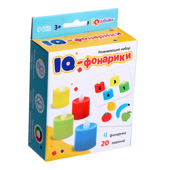 Развивающий набор «IQ-фонарики» поможет малышам от 3 лет познакомиться с основными цветами, потренировать мышление и внимательность, а также умение рассуждать и решать несложные логические задания.