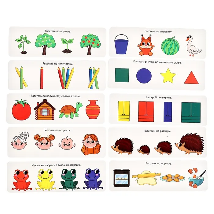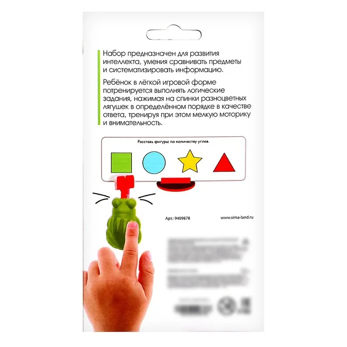 Внутри вы найдёте 4 ярких лягушки и карточки с 20 заданиями.