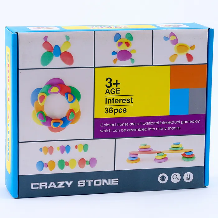 - Включает 36 деревянных камней разных размеров и цветов, идеально отшлифованных для безопасного использования.