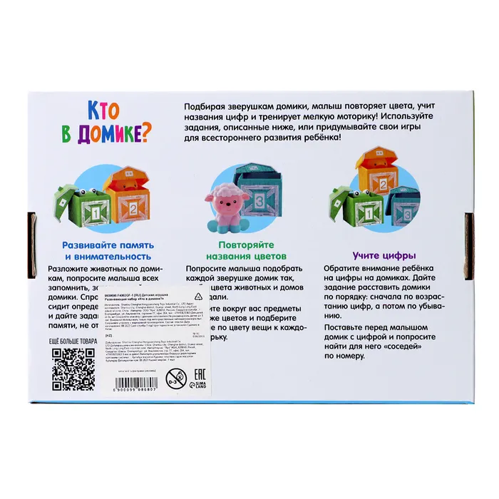 Развивающий набор «Кто в домике?» разработан специально для малышей от 3 лет. Подбирая зверушкам домики, ребёнок повторяет цвета, учит названия цифр и тренирует мелкую моторику.