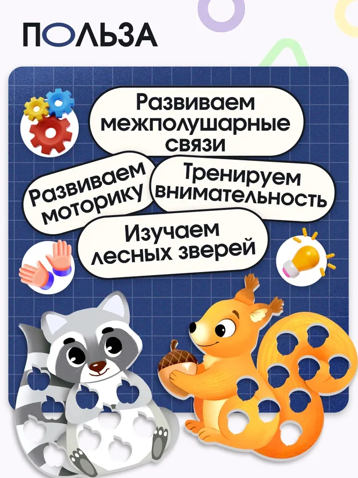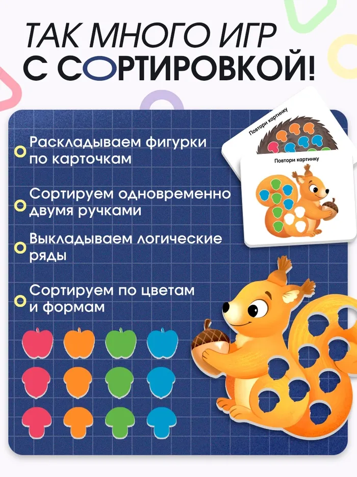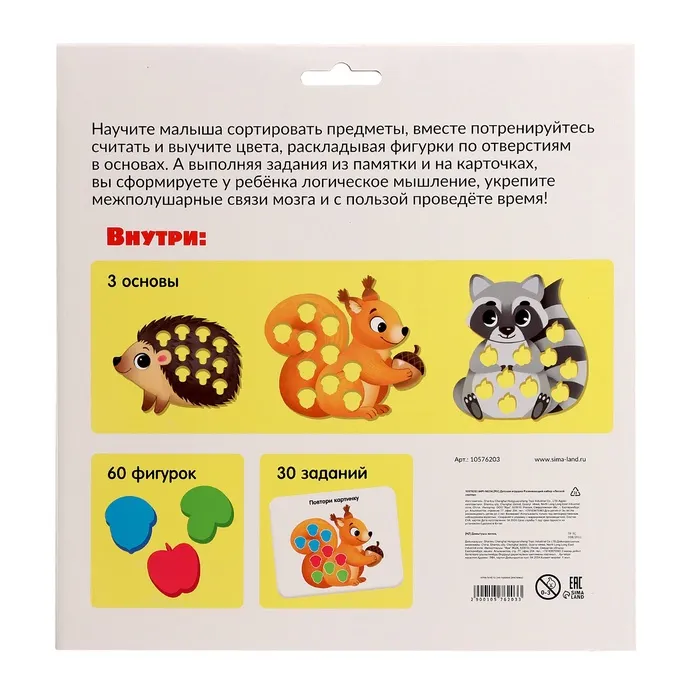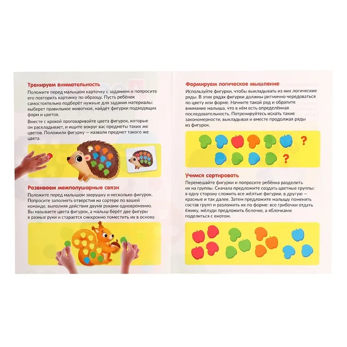 С помощью набора ребёнок осваивает базовые понятия, которые пригодятся ему в дальнейшем обучении. Регулярные занятия с «Лесным сортером» укрепляют мелкую моторику, способствуют развитию логического мышления и координации.