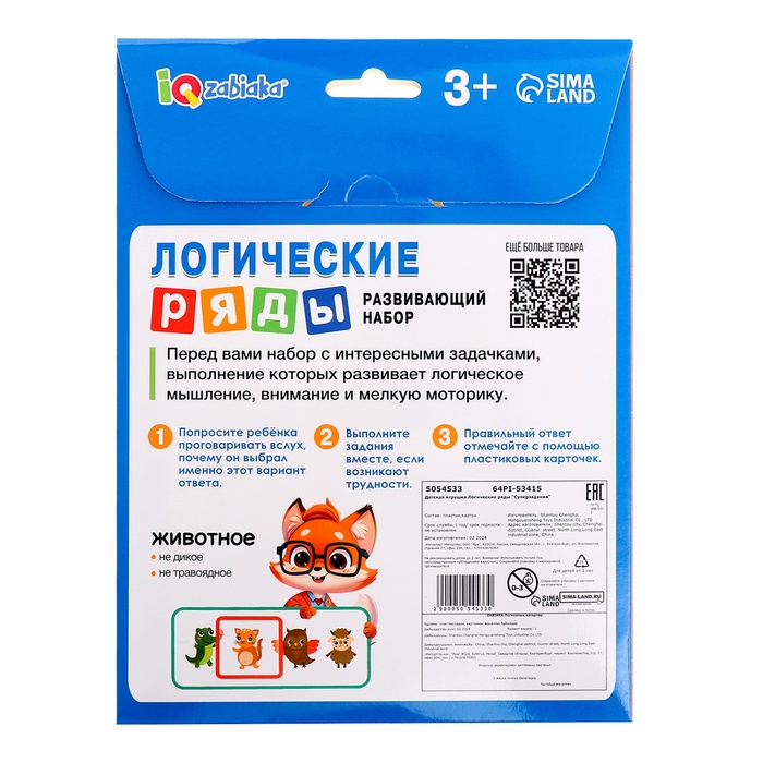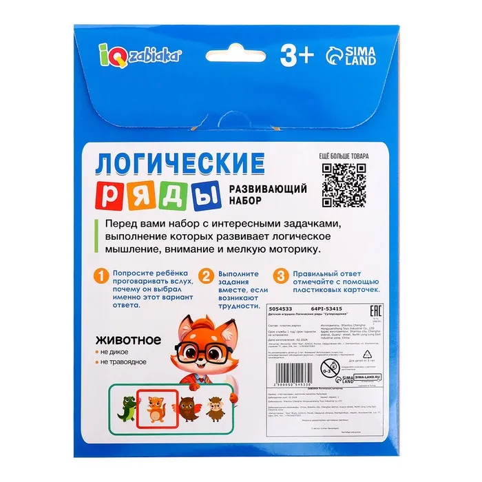 Развивающий набор «Логические ряды. Найди ответ» — Характеристики