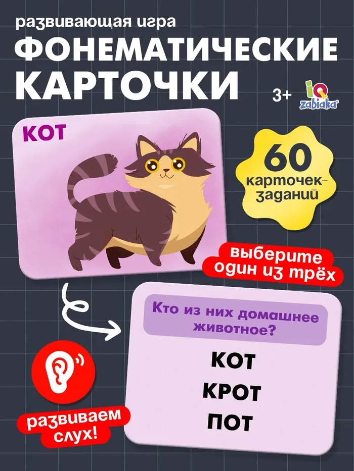 Развивающий набор «Логопедические загадки» поможет малышу в лёгкой игровой форме научиться правильно произносить сложные звуки: [Л], [Р], [Ж], [Ш], [С], [З].