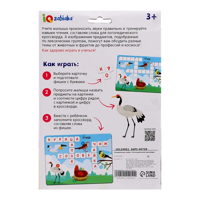 Развивающий набор «Логопедический кроссворд», 20 кроссвордов, 3+ — Характеристики