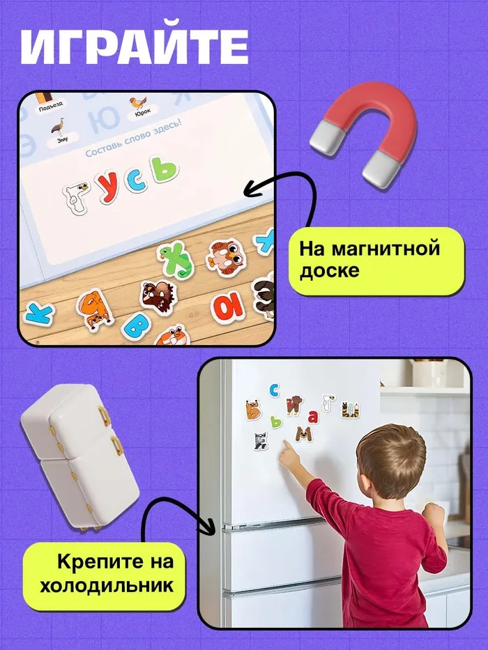 Игры с магнитными буквами помогают ребёнку быстрее запомнить буквы, тренируют мелкую моторику и развивают ассоциативное мышление. Раскладывая буквы в алфавитном порядке или составляя слова, дети учатся сопоставлять звуки и символы, что станет основой для будущего успешного чтения.