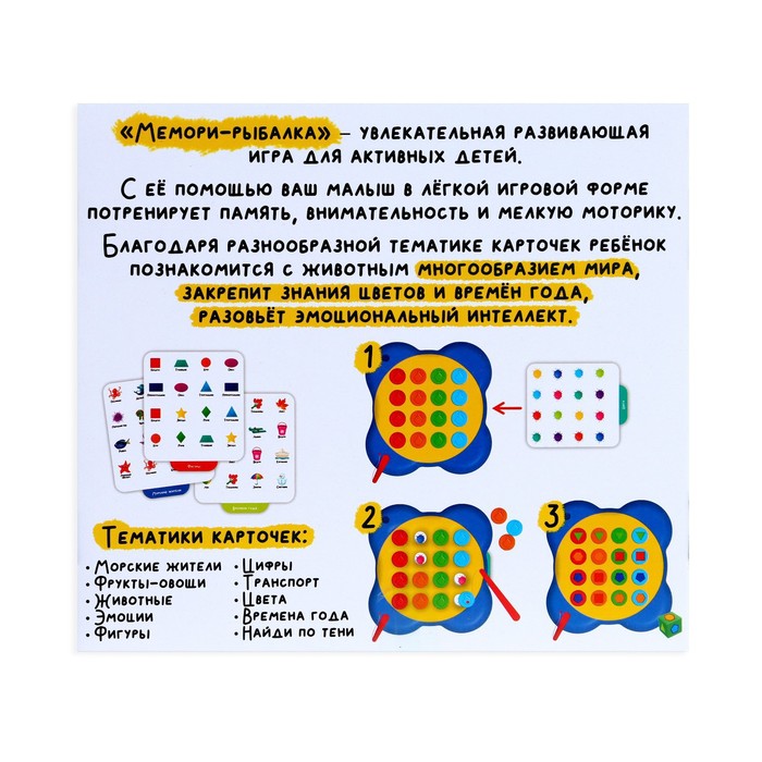 Развивающий набор «Мемори-рыбалка», магнитная рыбалка, 2 удочки, игровая основа, карточки — Характеристики