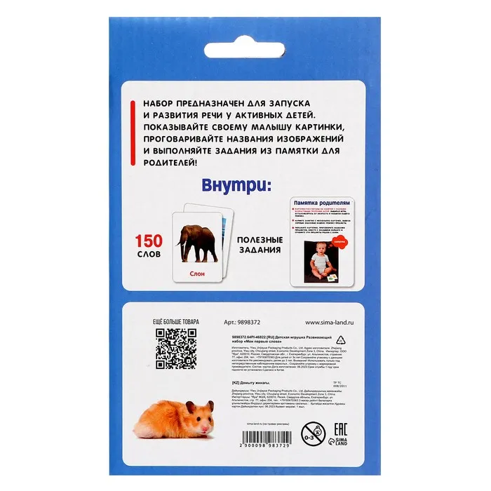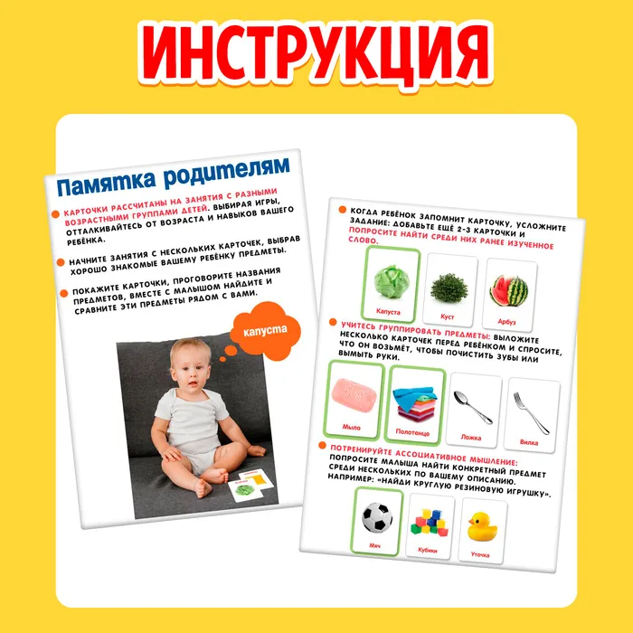 Развивающий набор «Мои первые слова» предназначен для запуска и развития речи у малышей. Карточки рассчитаны на занятия с разными возрастными группами детей. Выбирая игры, отталкивайтесь от возраста и навыков вашего ребёнка.