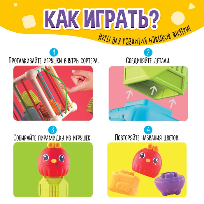 Сортер станет полезным дополнением к развивающим игрушкам малыша, даря радость и пользу в каждом занятии!