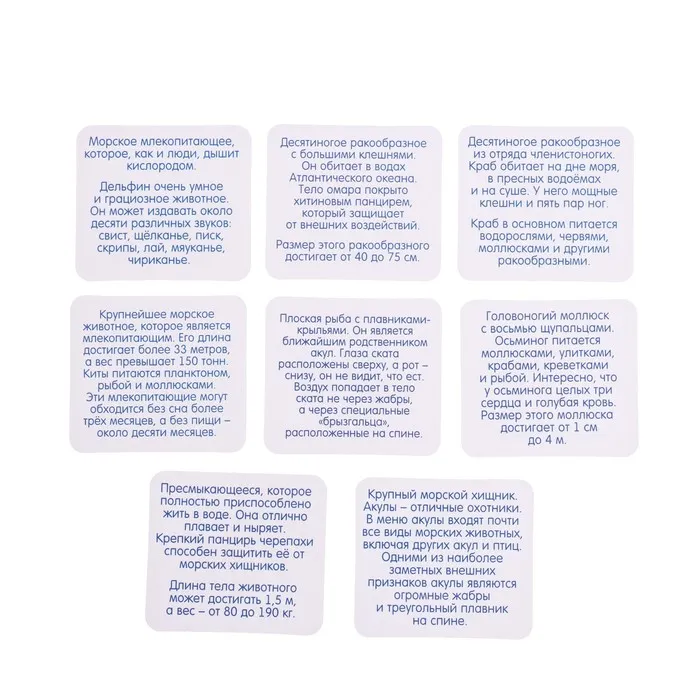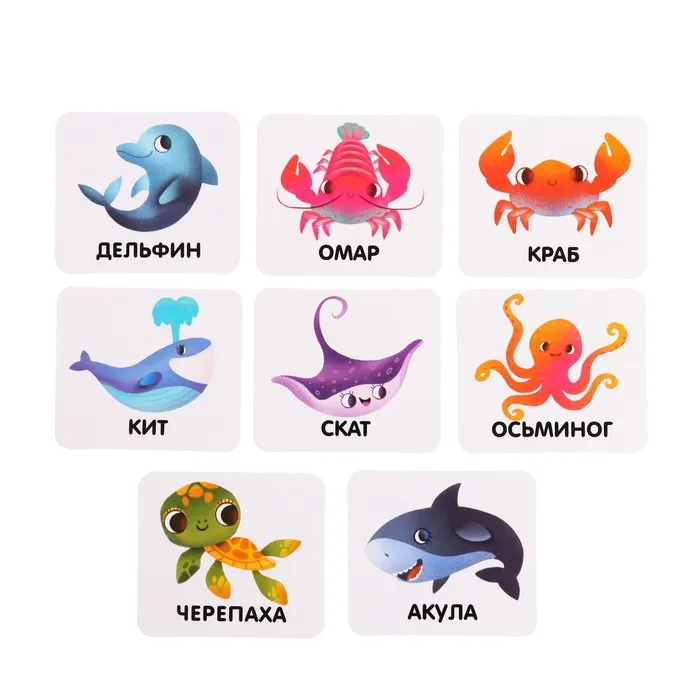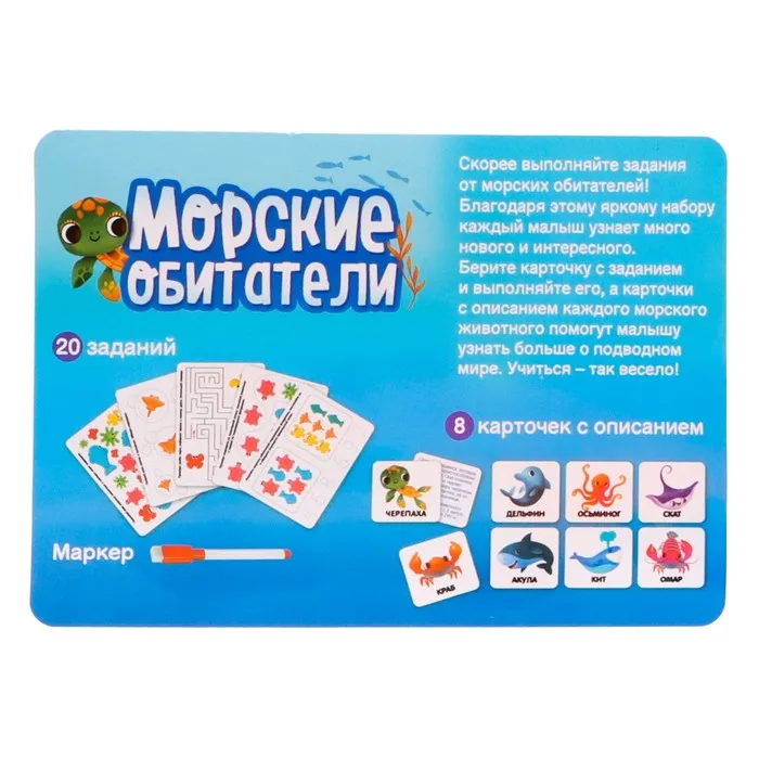 Развивающий набор «Морские обитатели», задания на карточках, маркер — Характеристики