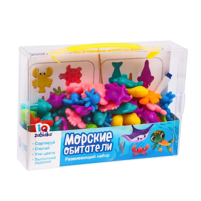 Развивающий набор «Морские обитатели» подходит для занятий по методике Монтессори. С набором малыш выучит основные цвета, потренирует мелкую моторику, логическое мышление, память, а также познакомится с разными животными.